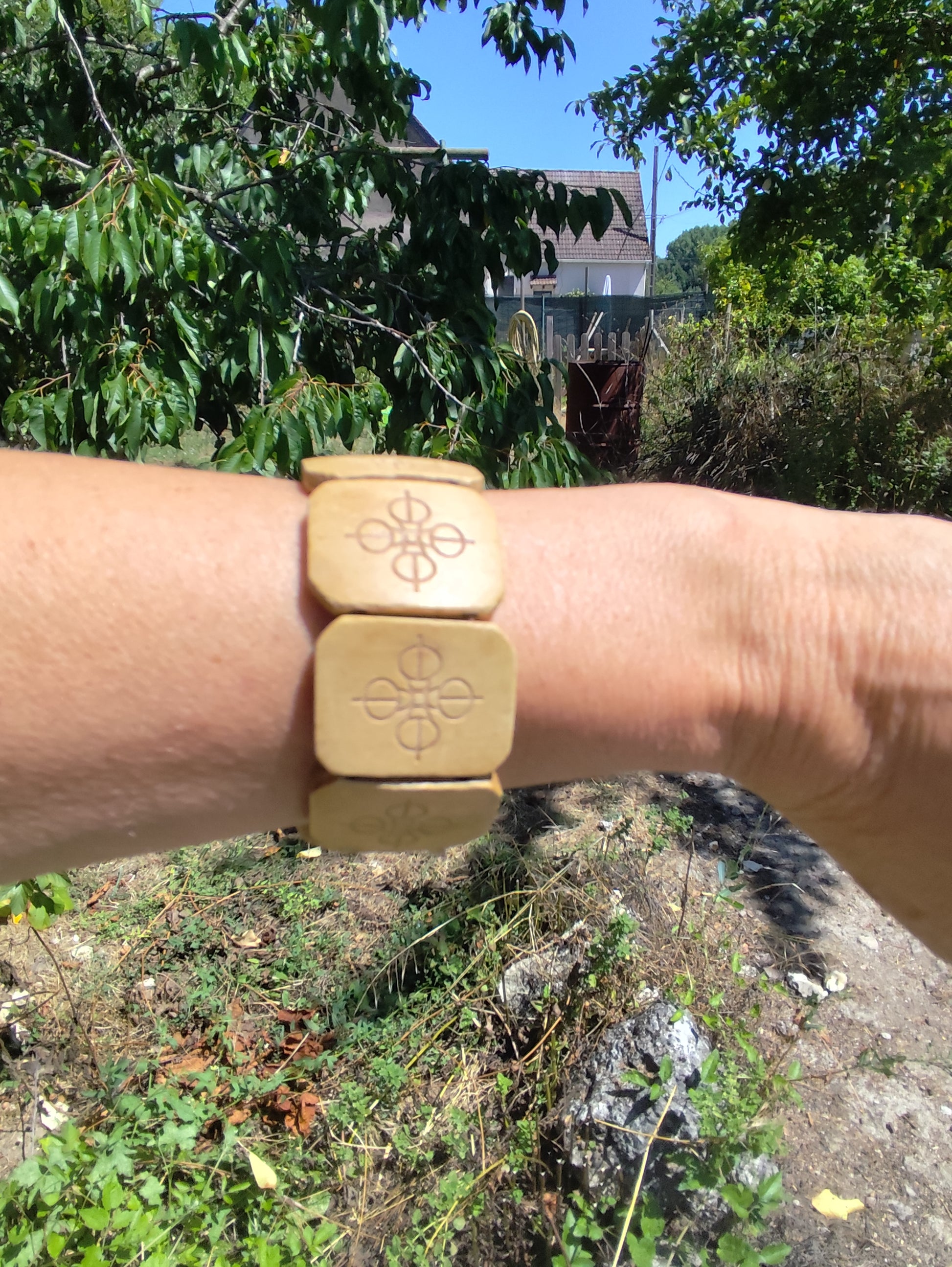 Bracelet large en bois gravé