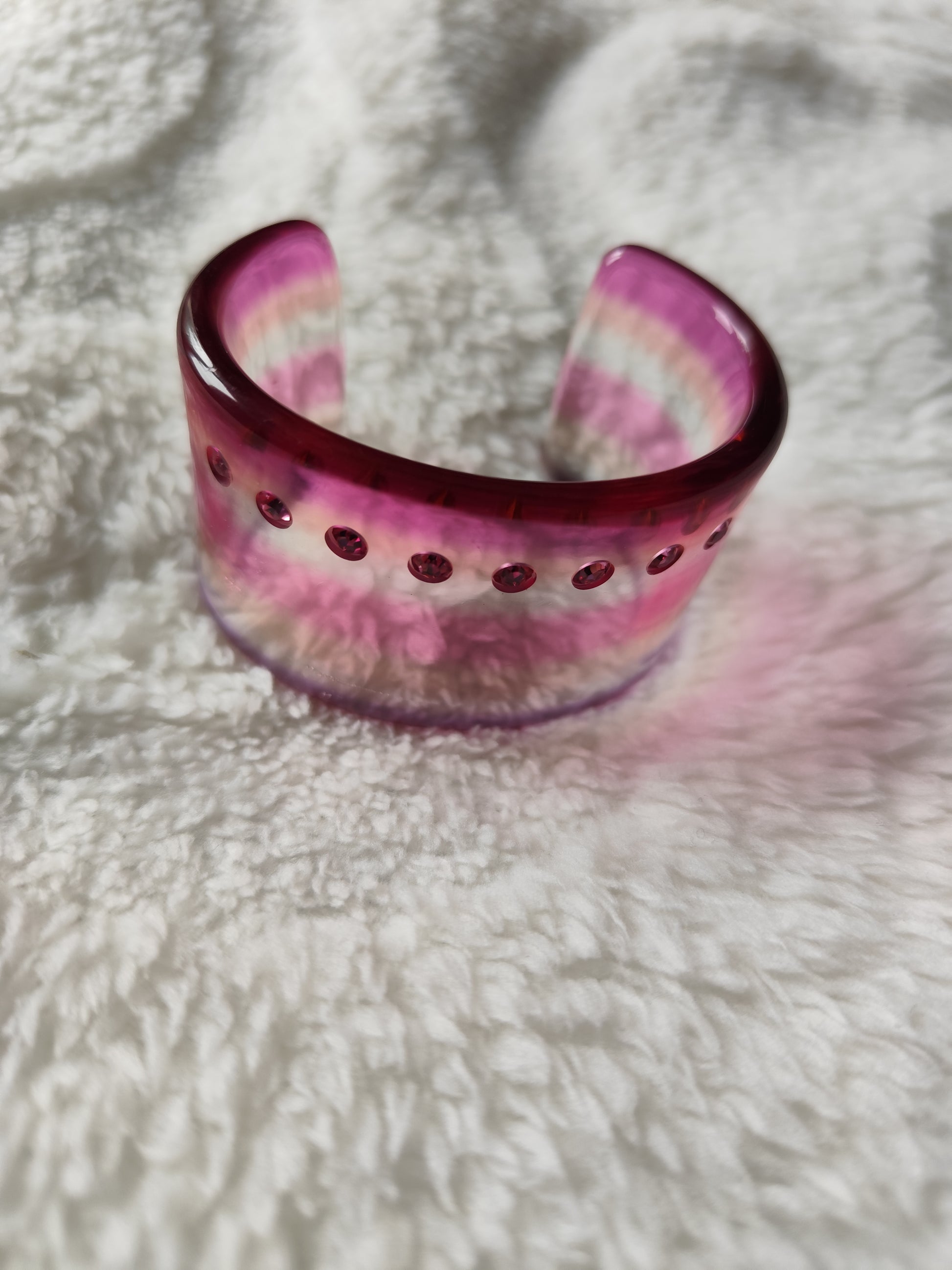 Manchette en résine rigide effet marbré, dans une belle palette de roses, lilas et ivoire.