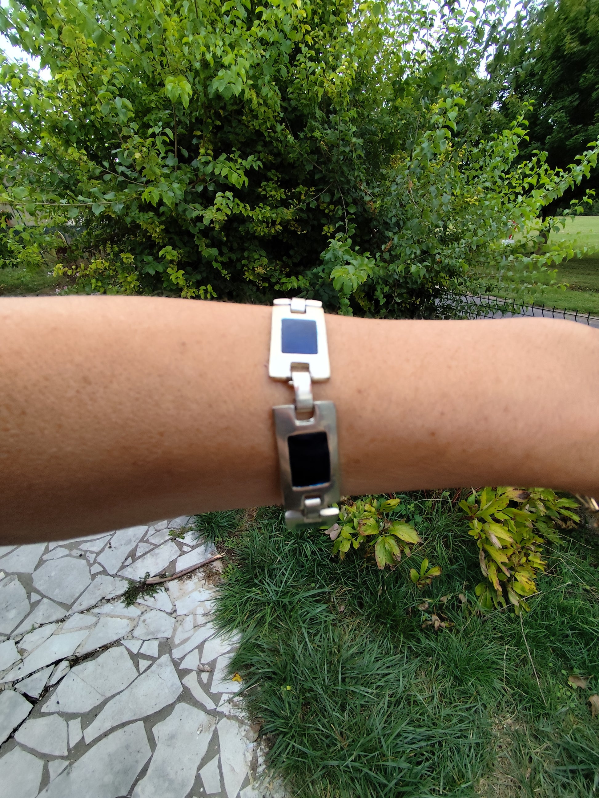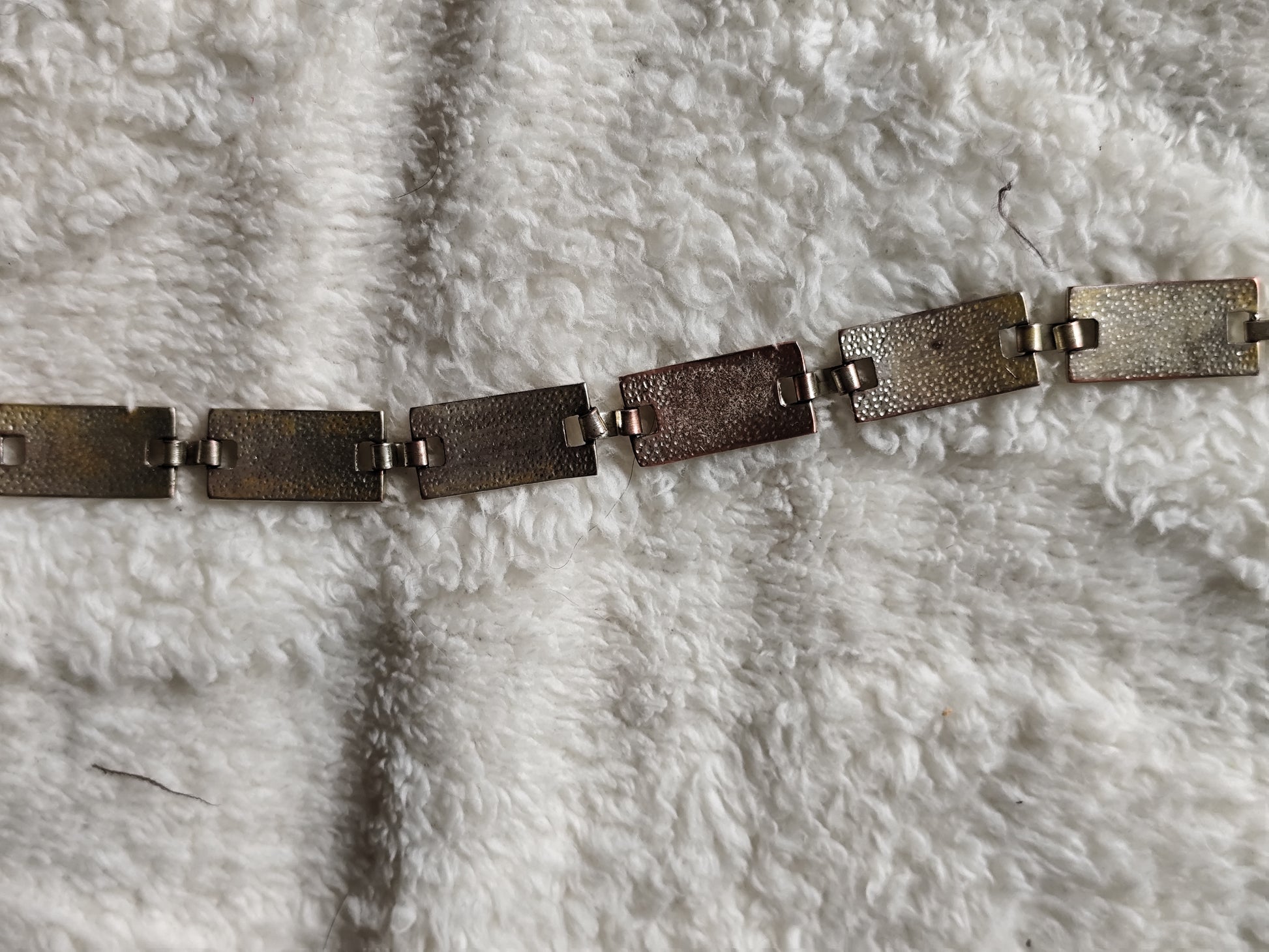 Bracelet vintage argenté à maillons rectangulaires bleu