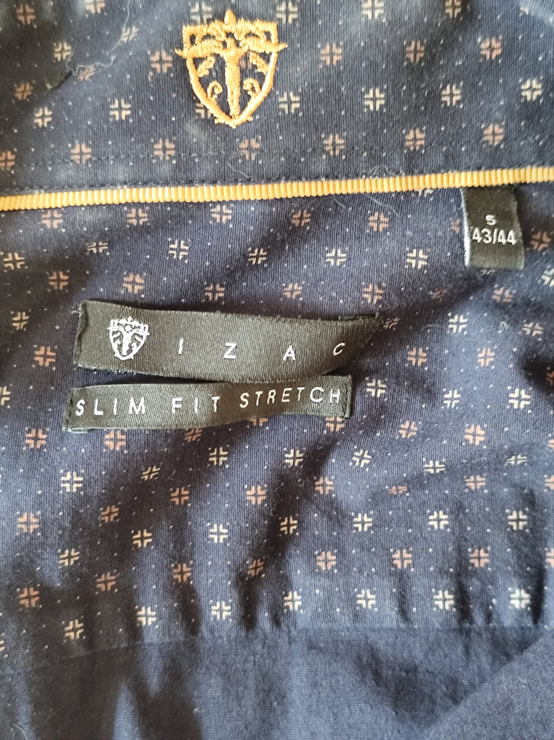 Chemise homme IZAC, coupe slim fit stretch, bleu marine à micro-motifs discrets.