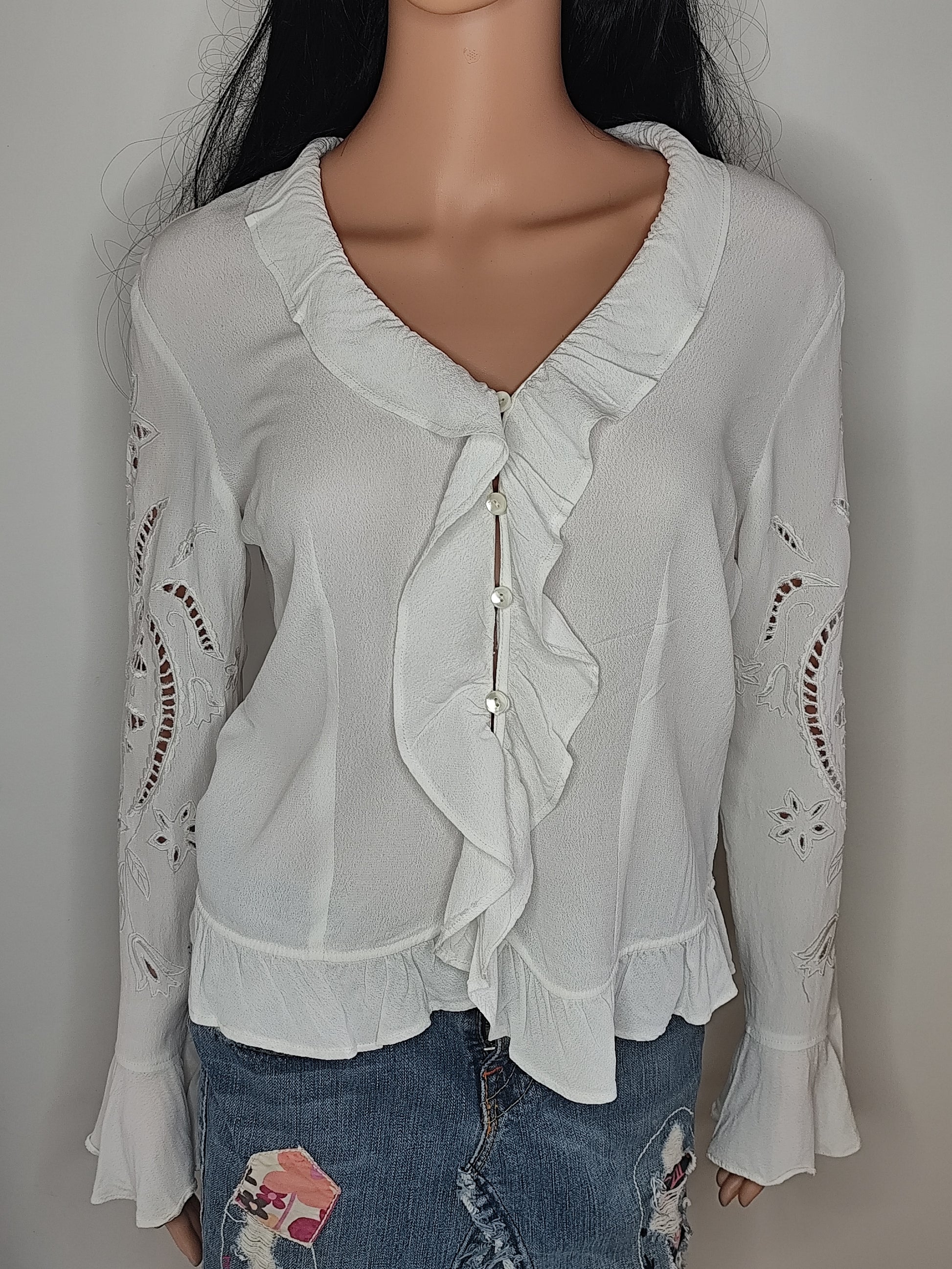 đ€ Chemisier Blanc ĂlĂ©gant Together â DĂ©tails AjourĂ©s & Volants - Taille 38/40