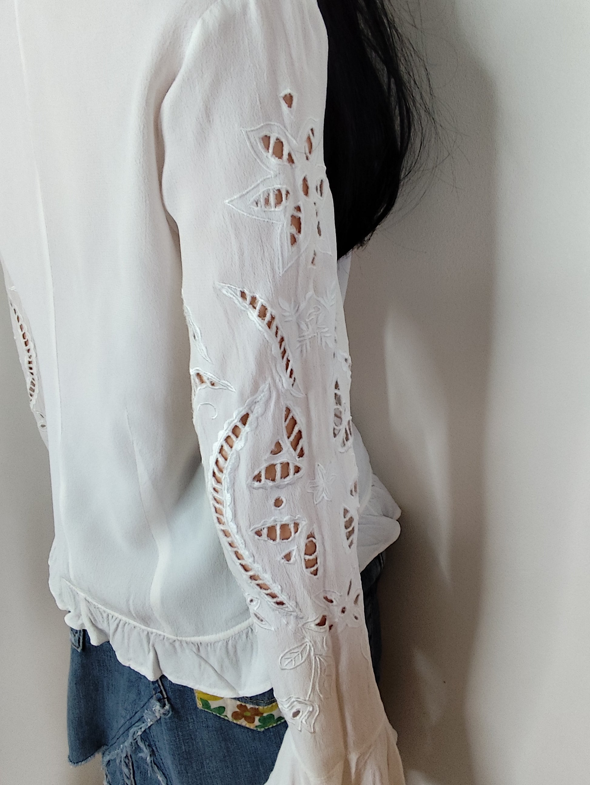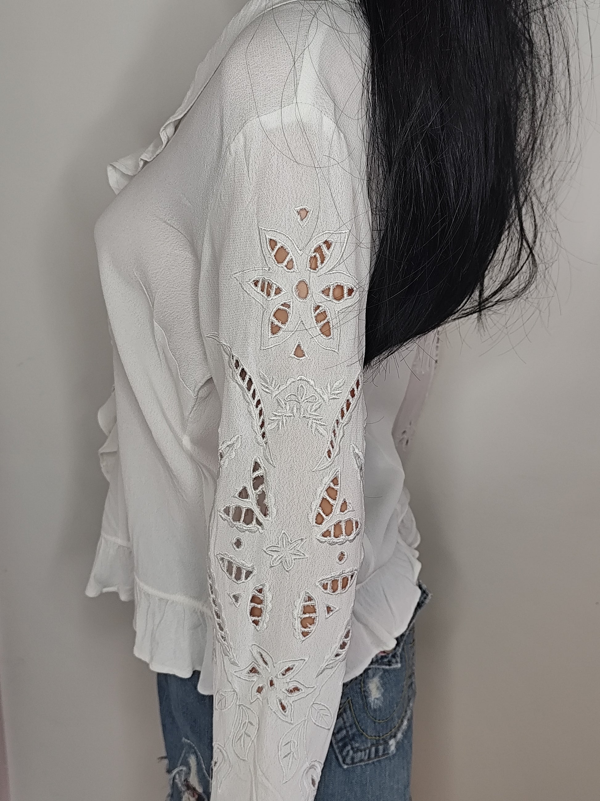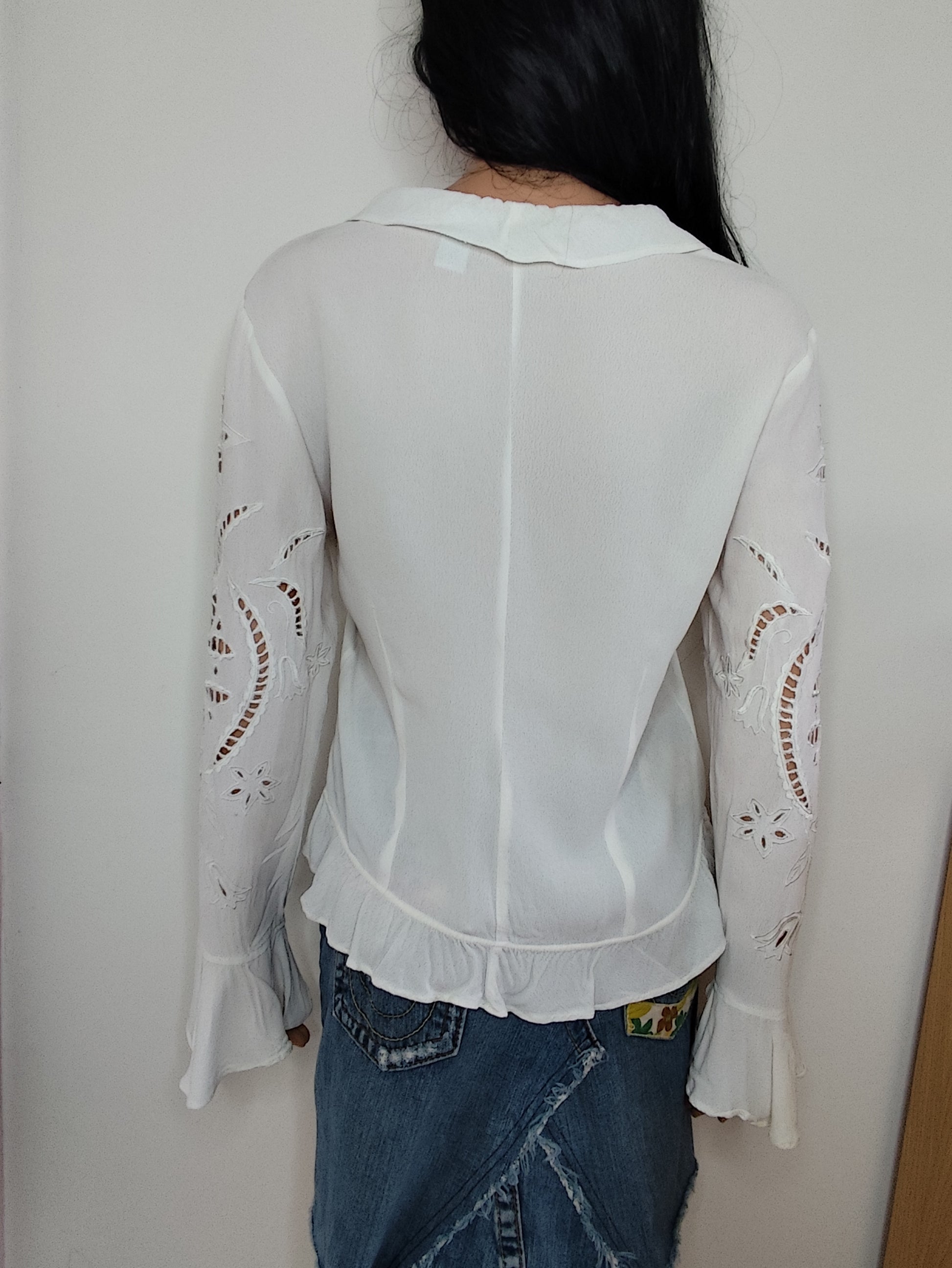 ⚠Chemisier blanc fluide avec manches longues ajourées