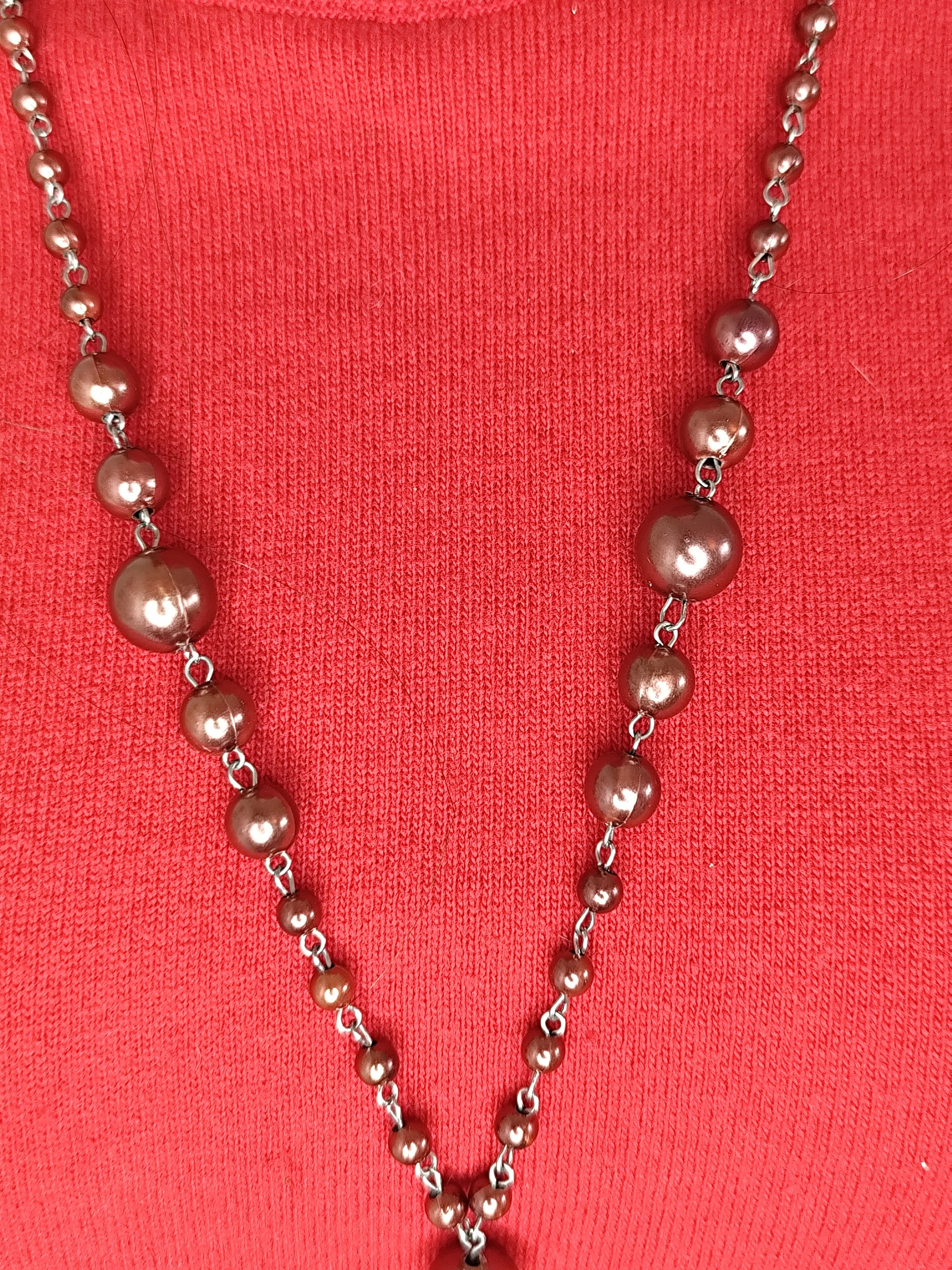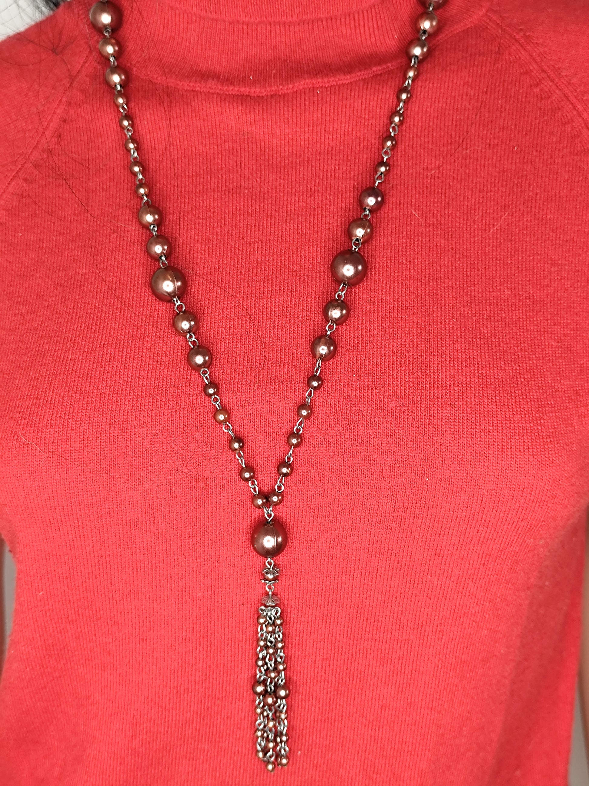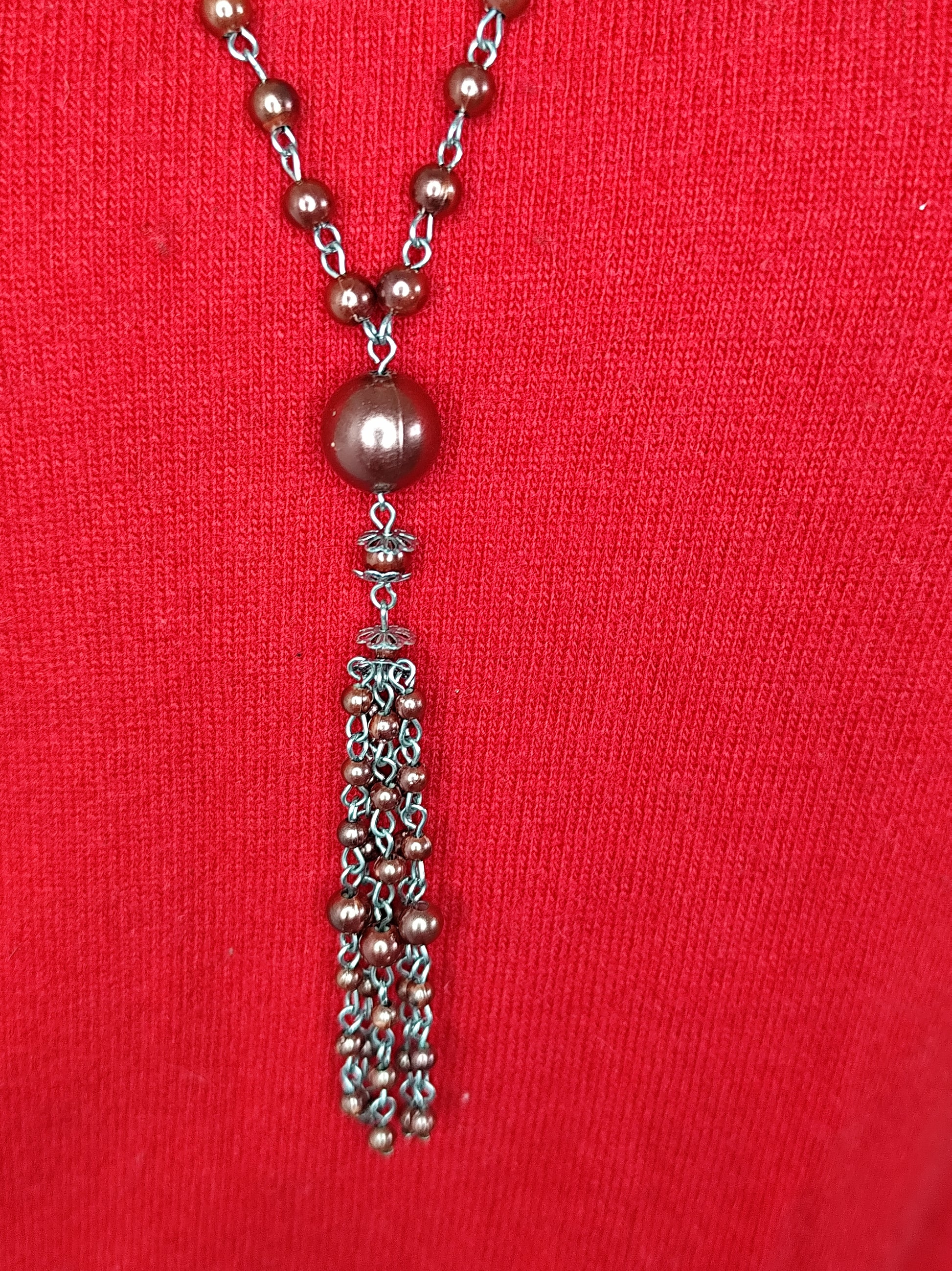 Long Collier Perlé Marron avec Pampilles – Élégance Bohème et Intemporelle