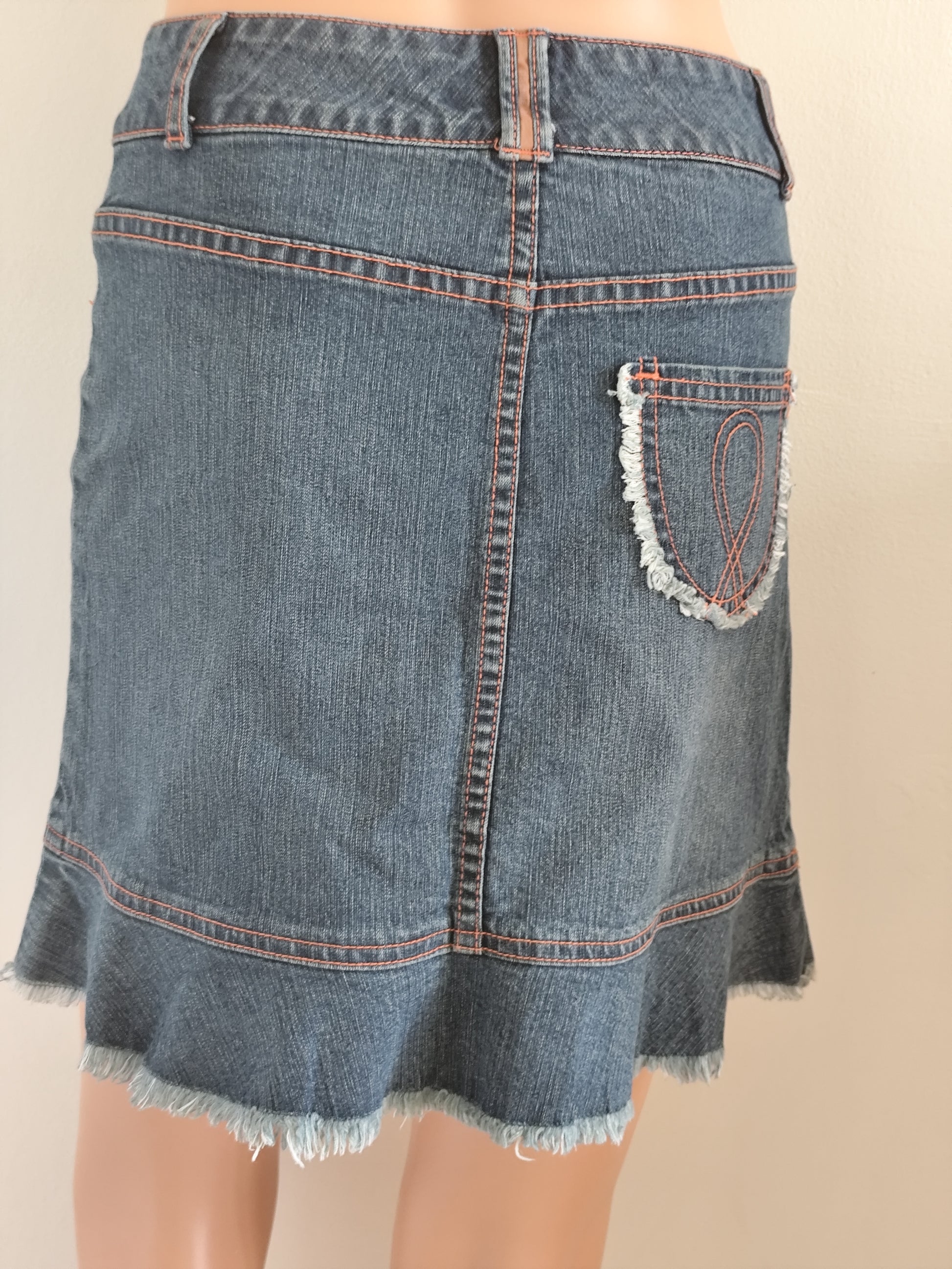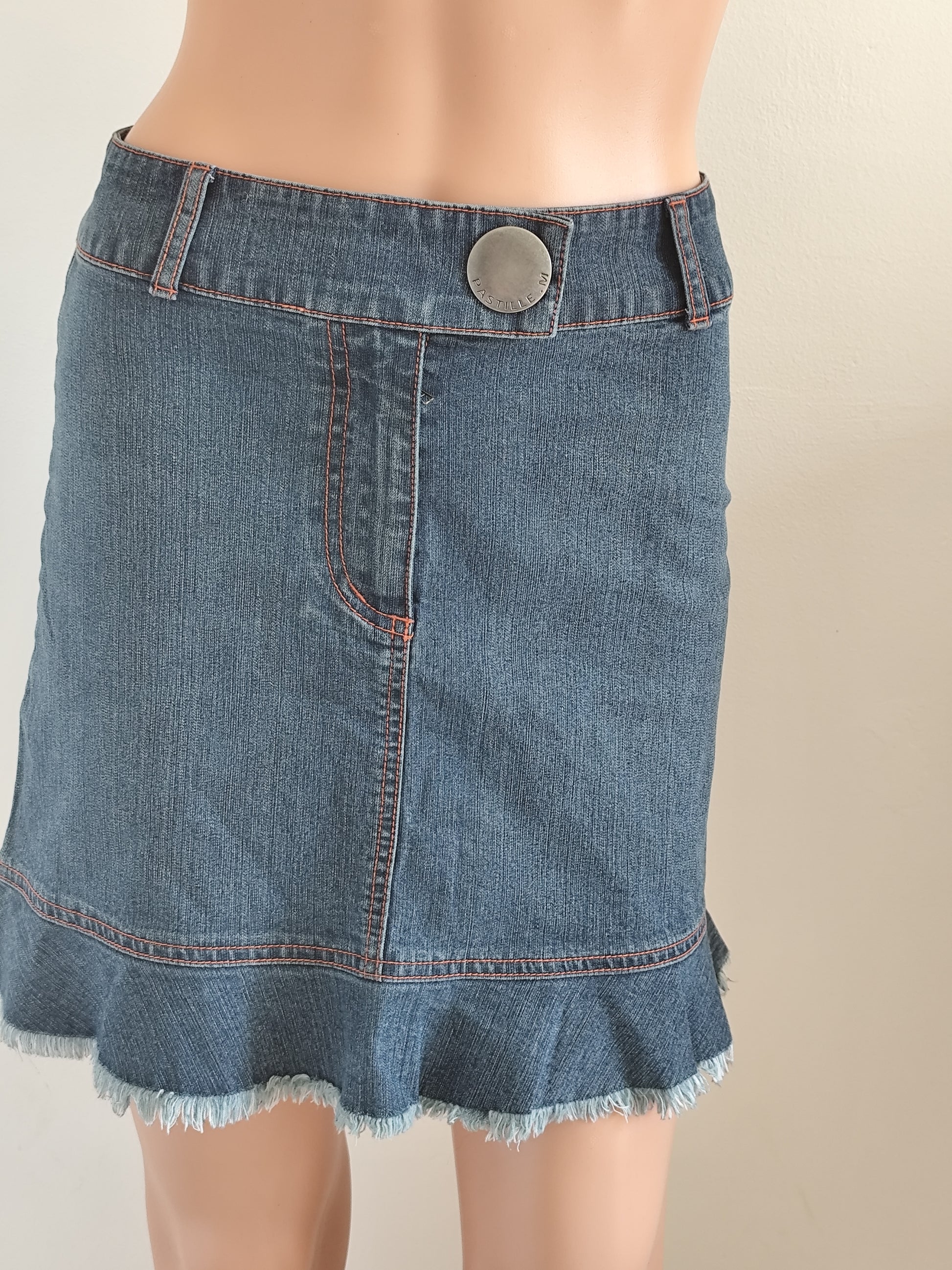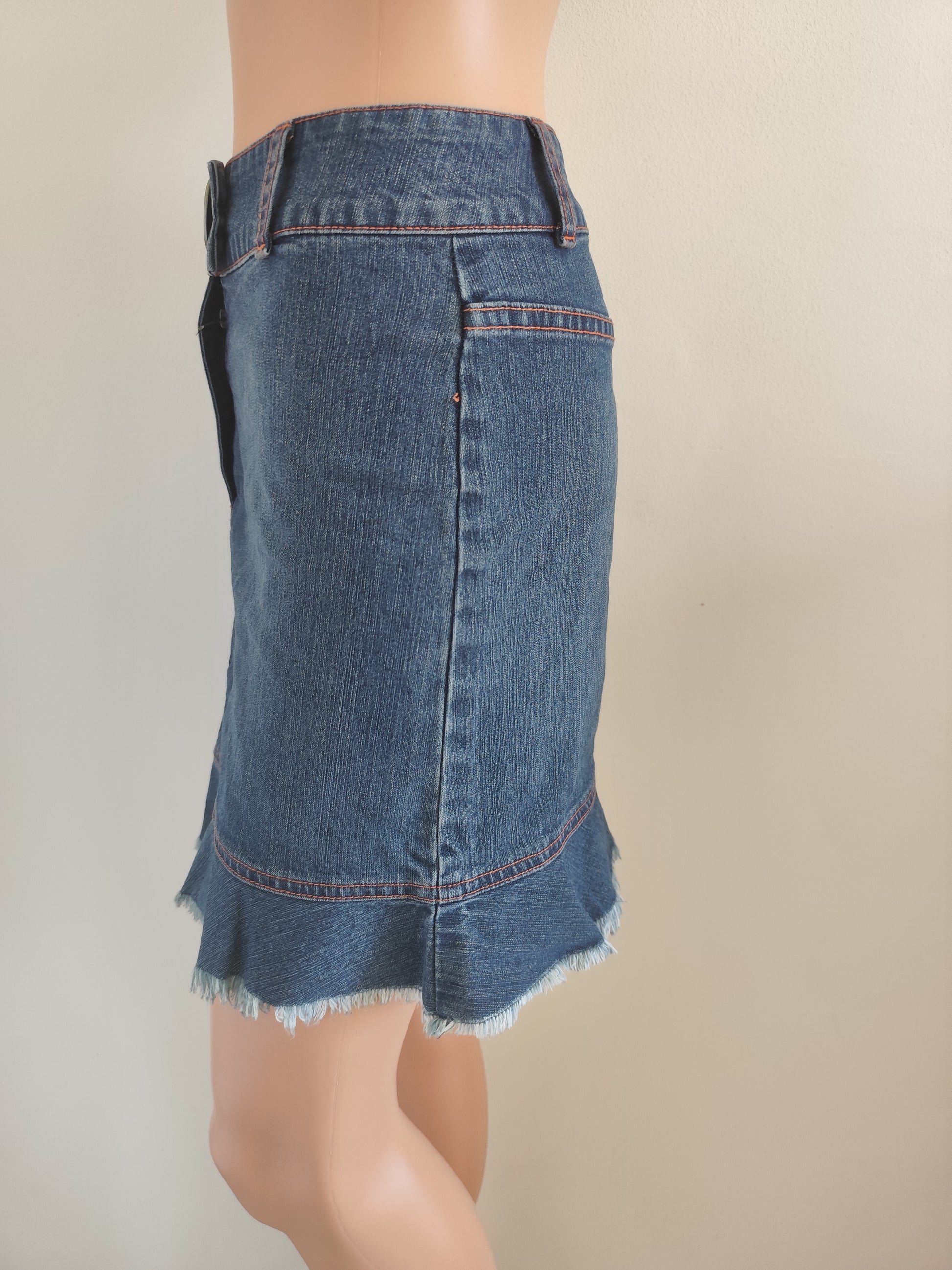 Jupe en jean Y2K volantée – Pastille Menthe – T. 36