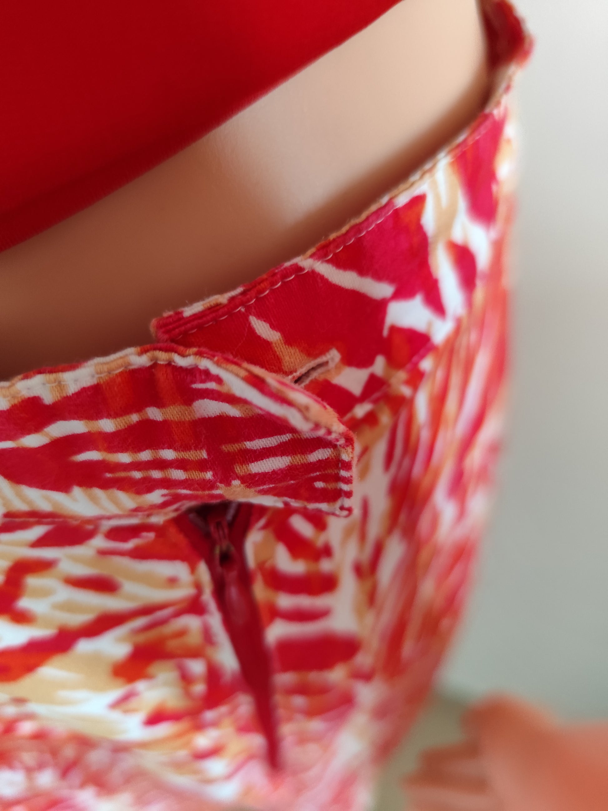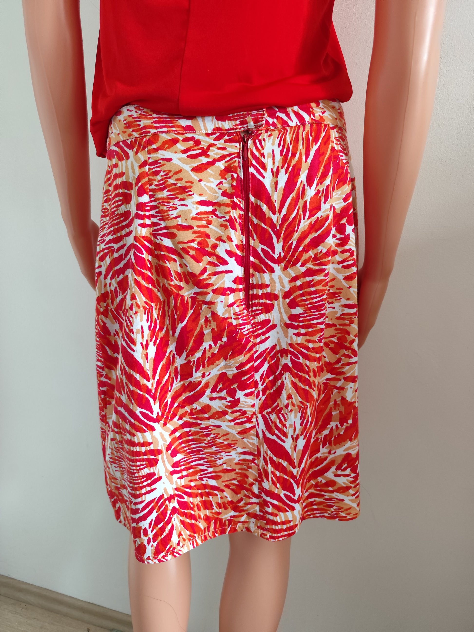 Jupe droite imprimée rouge & corail – La Fiancée du Mékong – T. L/40