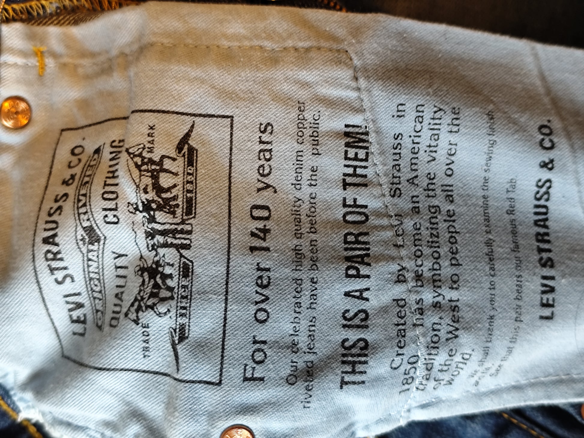 Bouton siglé Levi’s – étiquette et patch arrière présents.