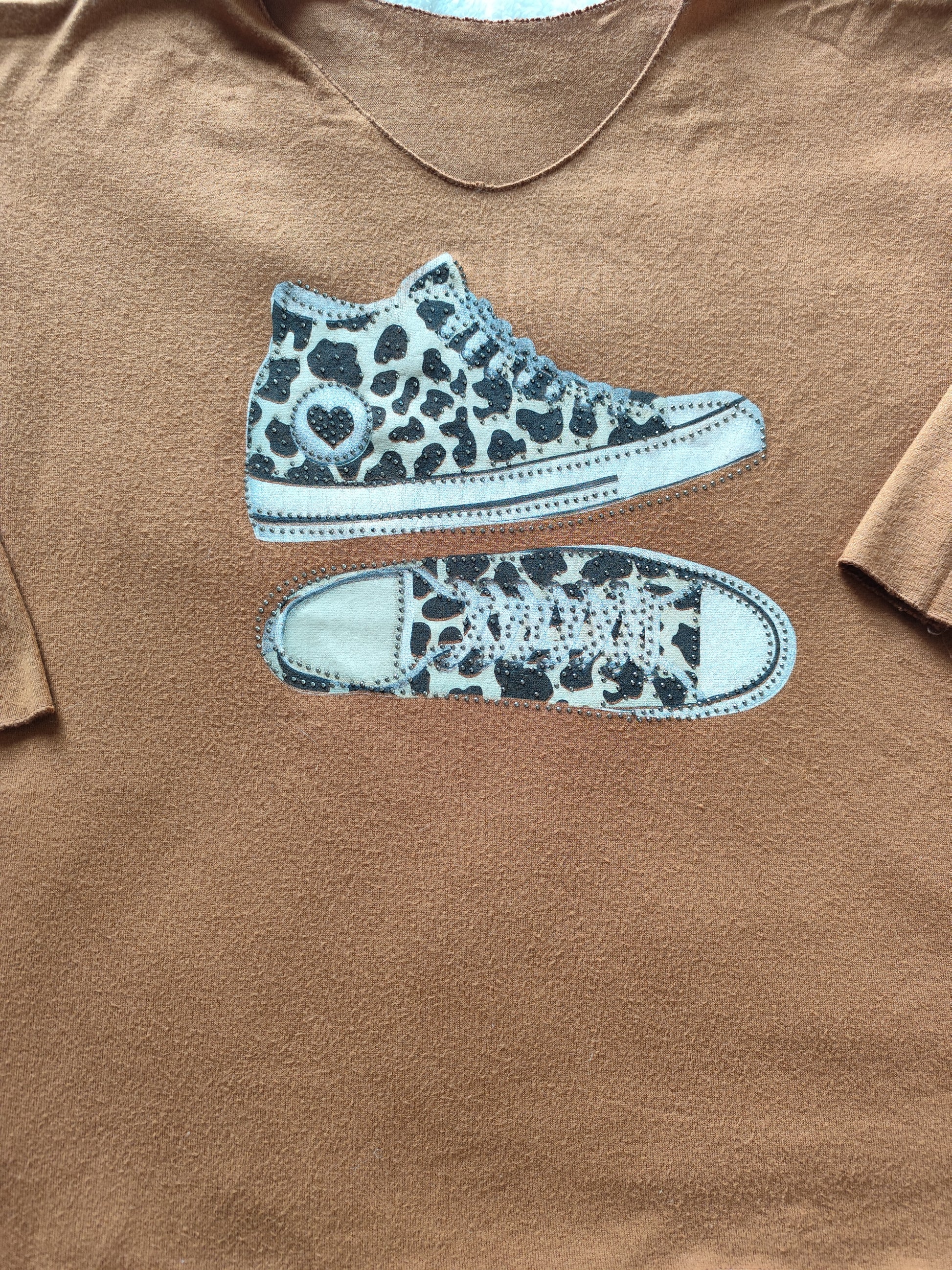 T-shirt marron imprimé baskets – Made in Italy - Taille 48/52
