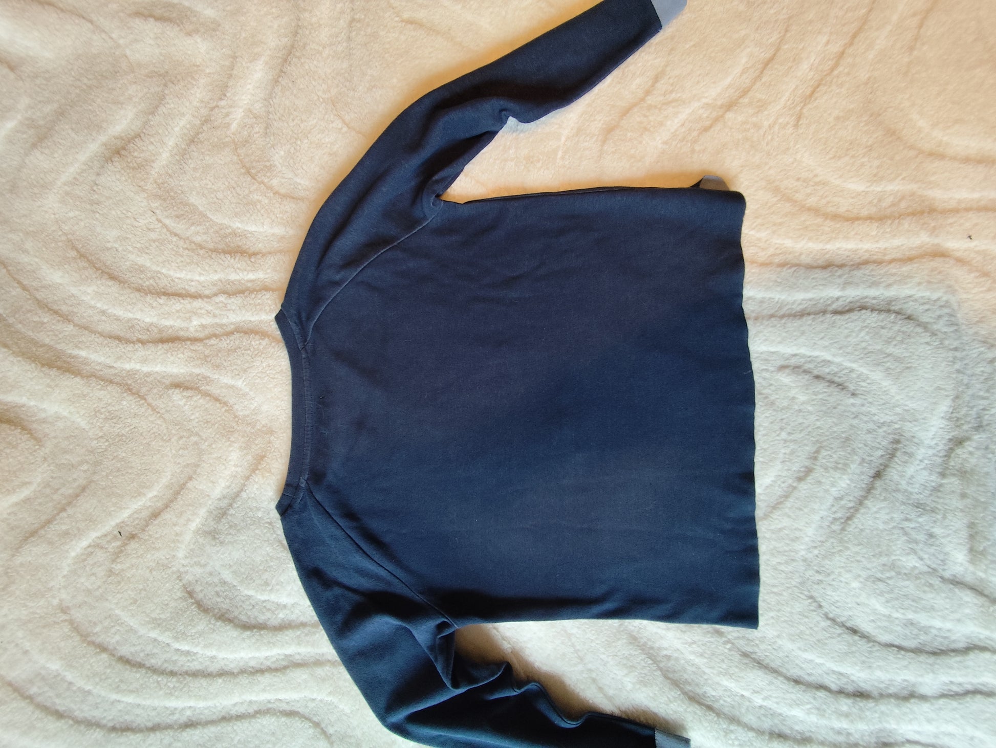 Taille S mais coupe oversize (largeur ≈ 51 cm, longueur ≈ 55 cm).
