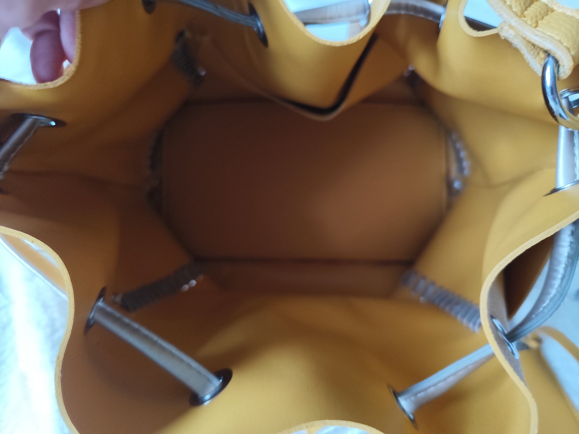Optez pour une touche de chic et de modernité avec ce superbe sac seau couleur moutarde accompagné de sa pochette assortie. Un modèle élégant et pratique, idéal pour une utilisation quotidienne ou pour compléter une tenue sophistiquée. Son format spacieux permet d’y glisser tous vos essentiels, tout en gardant un style raffiné.