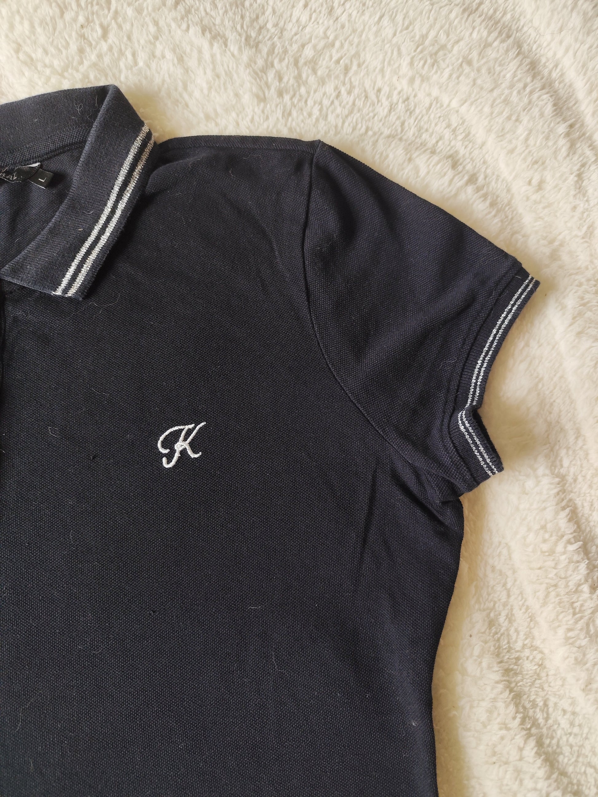 Polo noir à manches courtes de la marque Kaporal Jeans, avec petit logo "K" brodé  sur la poitrine.