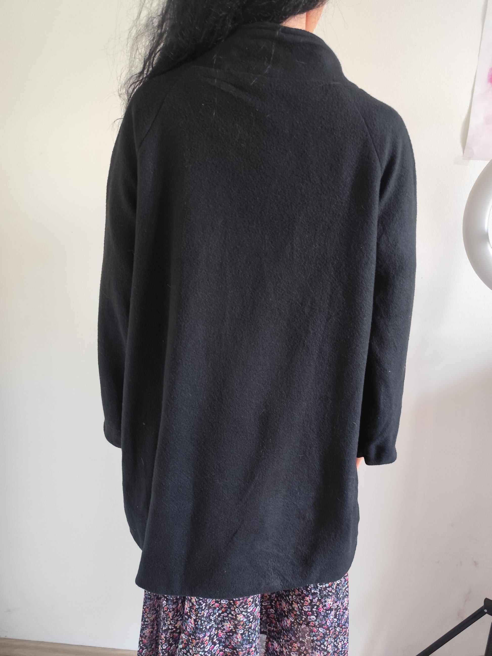 Veste mi-longue noire, doublée, parfaite pour la mi-saison.